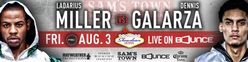 LAS VEGAS (July 11, 2018) – Rising contender Ladarius Miller (16-1, 5 KOs) will face Dennis Galarza (16-3, 9 KOs) a 10-round lightweight match that headlines Premier Boxing Champions on Bounce Friday, August 3 from Sam’s Town in Las Vegas.
