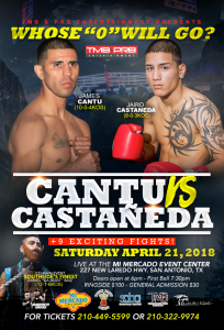SAN ANTONIO, TX (March 29, 2018) – TMB & PRB Entertainment, presents “Whose “0” Must Go”, live professional boxing Saturday April 21, 2018, from the Mi Mercado Event Center in San Antonio, TX.
